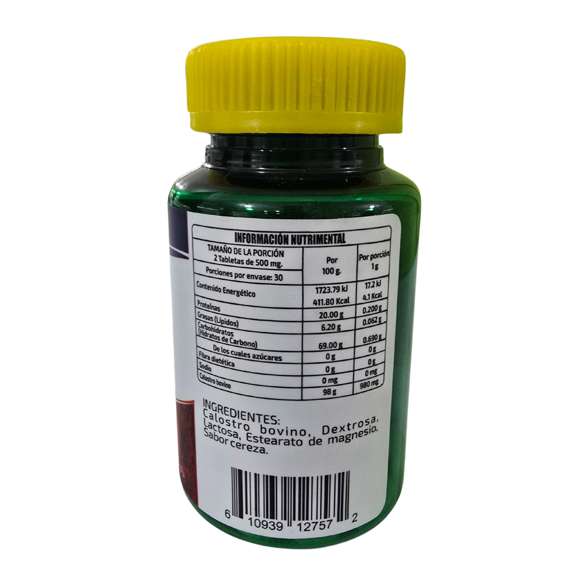Calostro Bovino Masticable Sabor Cereza 60 Tabletas de 500 mg