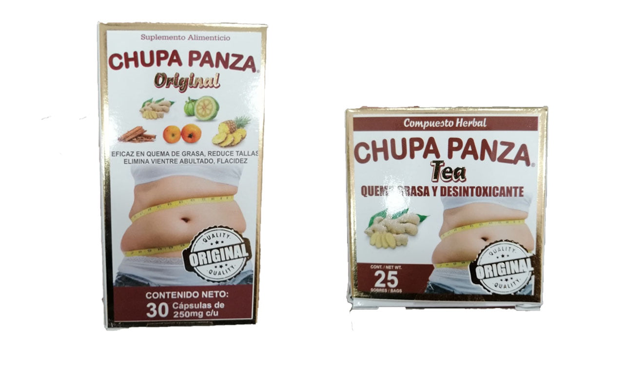 A la venta, 1 cajita de Chupa panza en cápsulas y 1 cajita de Chupa panza en Té