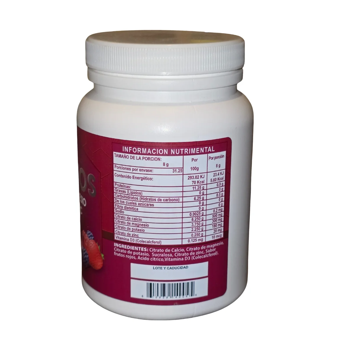 Citratos – Calcio, Magnesio, Potasio y Zinc con Vitamina D3 | Sabor Frutos Rojos (250 g)