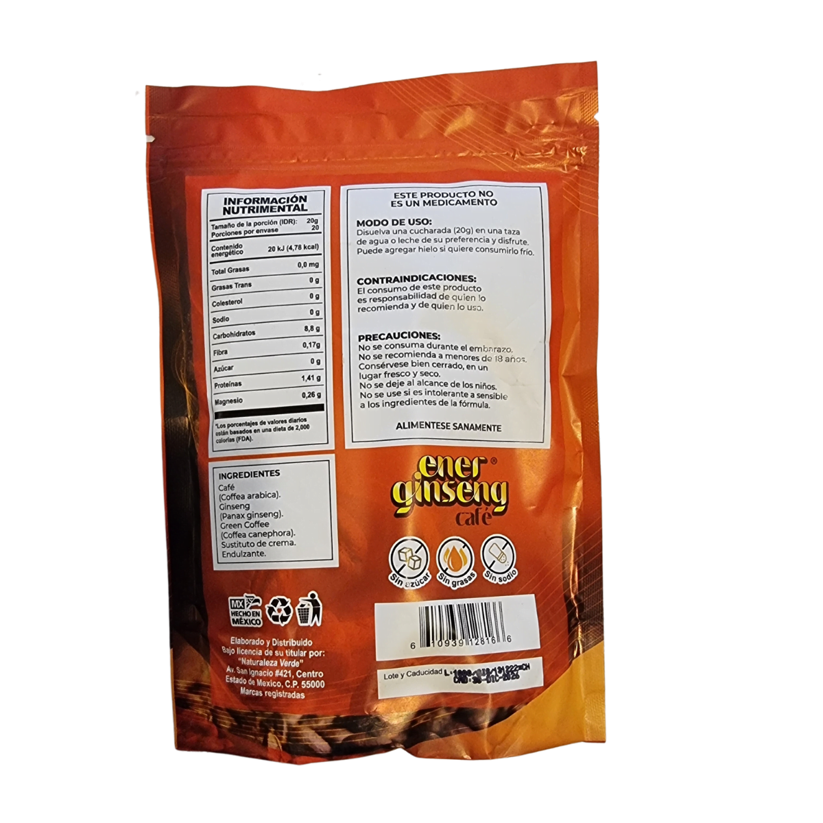 Ener-Ginseng Cafe con Ginseng en Polvo, bolsa con 400 gramos