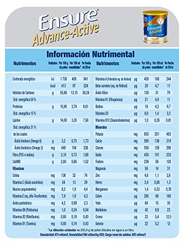 - Ensure Advance ? Active alimentación especializada / Sumplemento alimenticio que contiene 28 vitaminas y minerales