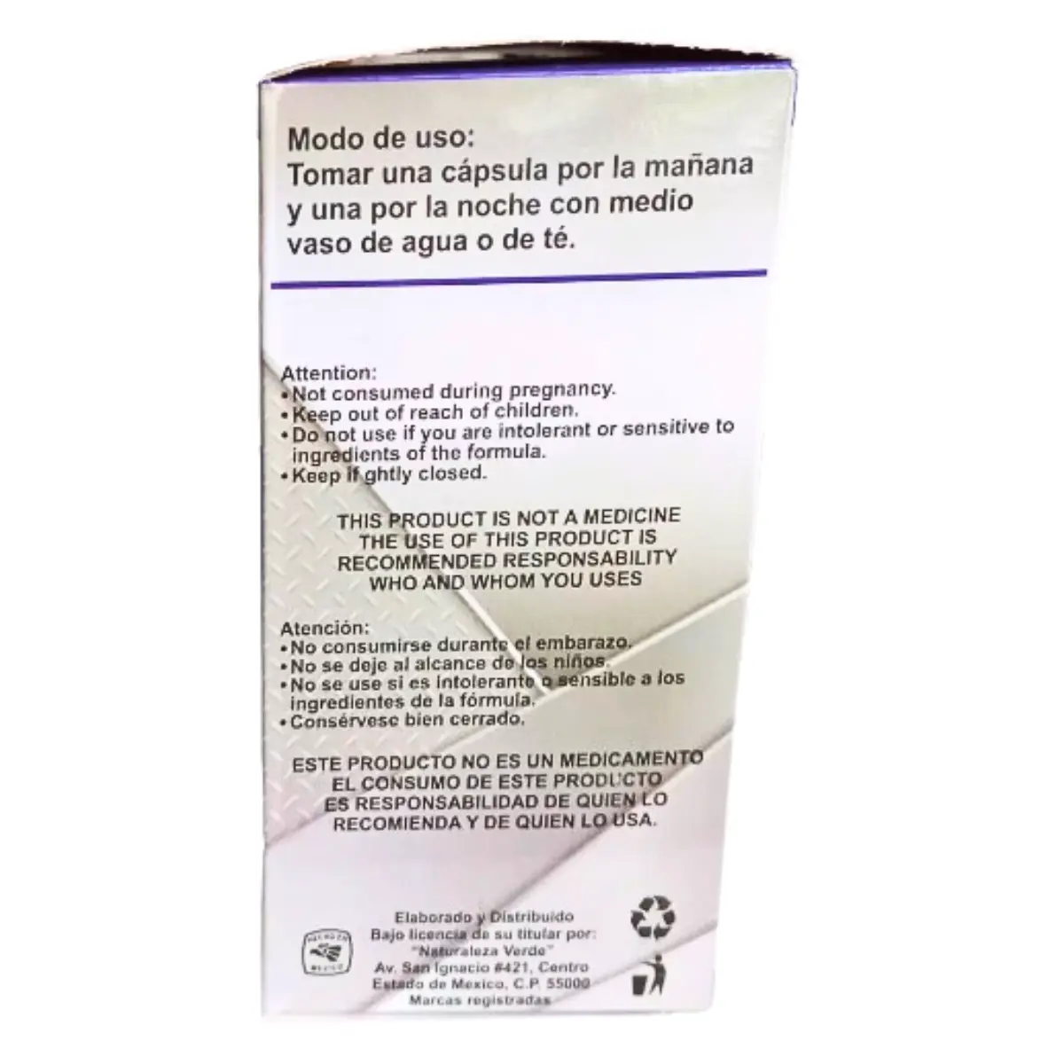 Modo de uso: Tomar una cápsula por la mañana y una por la noche con medio vaso de agua o té.